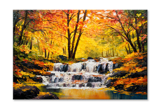 Waterfall In Autumn Forest Oil Painting Wall Art Limited Edition High Quality Print