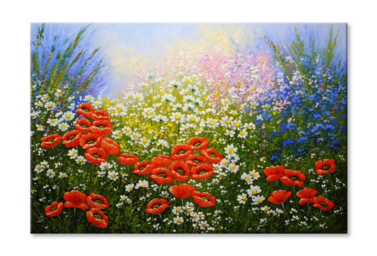 White Flowers & Red Poppies Field Oil Painting Wall Art Limited Edition High Quality Print