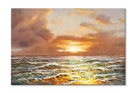 Waves on the Sea & Sunset Sky Oil Painting Wall Art Limited Edition High Quality Print