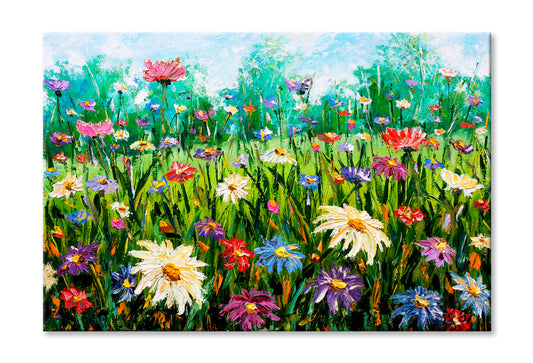 Wildflowers On Meadow Oil Painting Wall Art Limited Edition High Quality Print