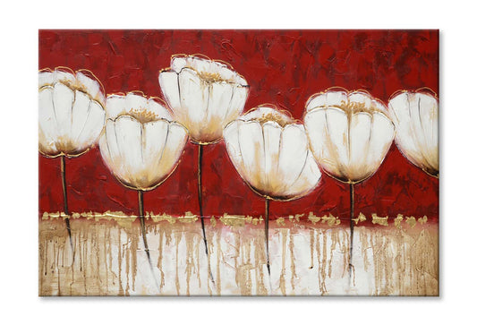 White Flowers, Red Texture Oil Paint Wall Art Limited Edition High Quality Print