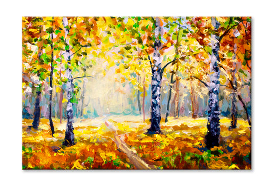 White Birch Trees In Autumn Forest Oil Painting Wall Art Limited Edition High Quality Print