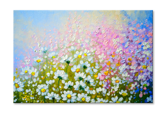 White Flower Plants Field Oil Painting Wall Art Limited Edition High Quality Print