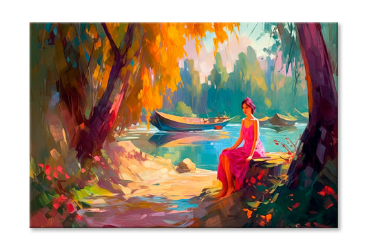 Woman Sitting On River Shore Oil Painting Wall Art Limited Edition High Quality Print