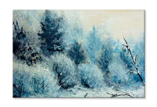 Winter Forest With Winter White Trees, Bushes In The Snow Oil Painting Limited Edition High Quality Print