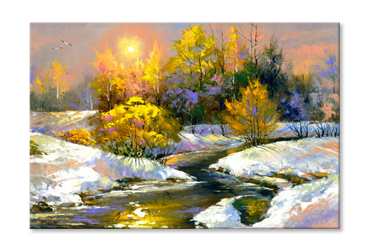 Winter River Oil Painting Wall Art Limited Edition High Quality Print