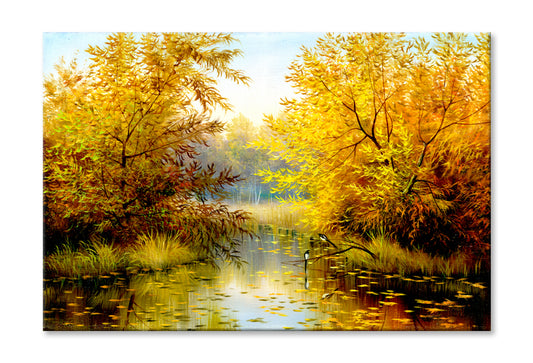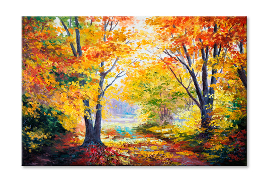 Yellow Autumn Forest Oil Painting Wall Art Limited Edition High Quality Print