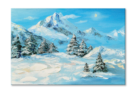 Winter Mountain Landscape & Snow Coverd Trees Oil Painting Wall Art Limited Edition High Quality Print