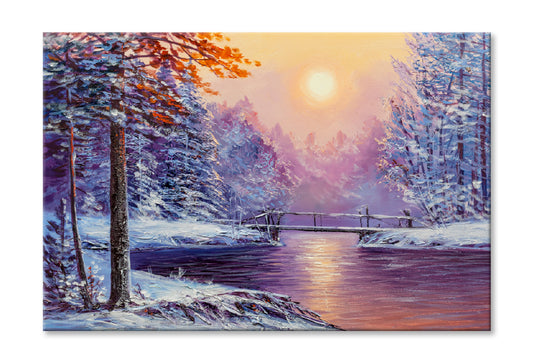 Winter Season River & Bridge Painting Limited Edition High Quality Print