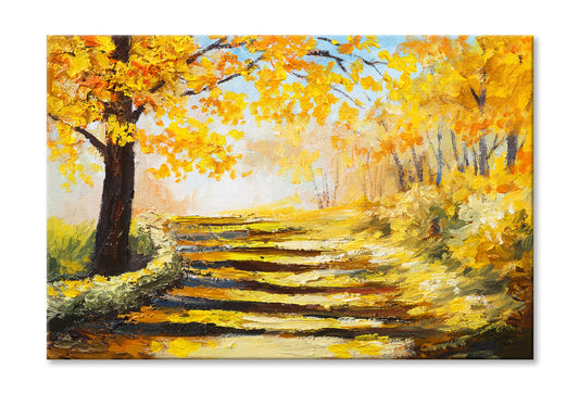 Yellow Autumn Trees & Pathway Oil Painting Wall Art Limited Edition High Quality Print