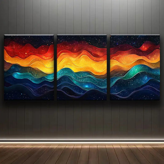 3pcs Luxurious Cloth Material, Colorful Waves Design Metal Print Ready to Hang Art