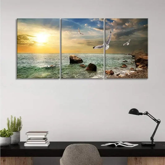 3pcs Sunset Seagull Ocean Beach Metal Print Ready to Hang Art
