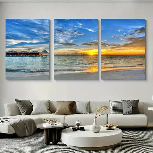 3pcs Beach Sunset Coastal Scenery Metal Print Ready to Hang Art