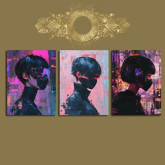 3pcs Vibrant Colorful Urban Bike Car Metal Print Ready to Hang Art