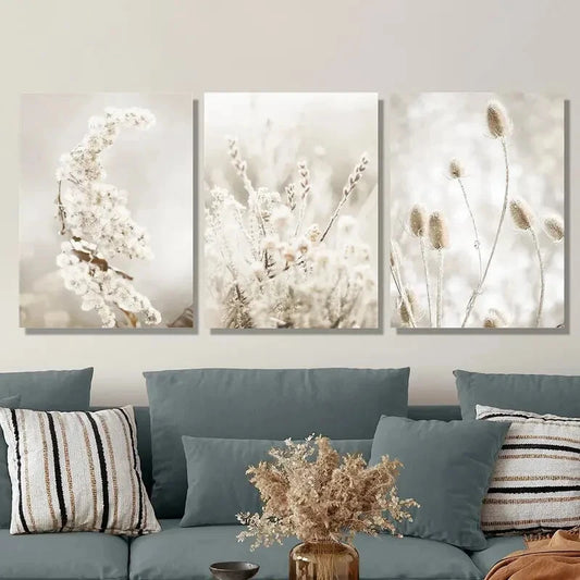 3pcs Neutral botanical prints, Metal Print Ready to Hang Art