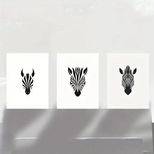 3pcs Zebra Black & White Bold Lines Metal Print Ready to Hang Art