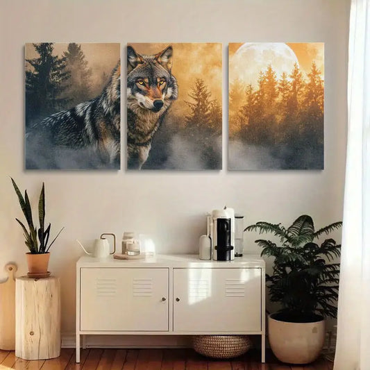 3pcs Piercing Yellow Eyes, Misty Forest & Moonlit Sky Design Metal Print Ready to Hang Art