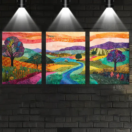 3pcs Colorful Fields River Elegant Design Metal Print Ready to Hang Art