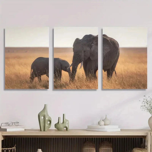 3pcs Wildlife, Elephant and Baby Elephant Metal Print Ready to Hang Art