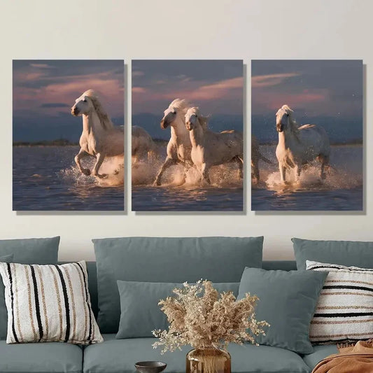 3pcs Camargue White Horses Metal Print Ready to Hang Art