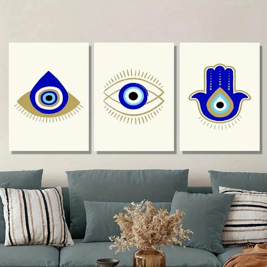 3pcs Teardrop & Hand Shaped Greek Eye, Metal Print Ready to Hang Art