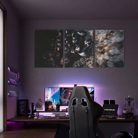 3pcs Puffins Huddled Together Classic Design Metal Print Ready to Hang Art
