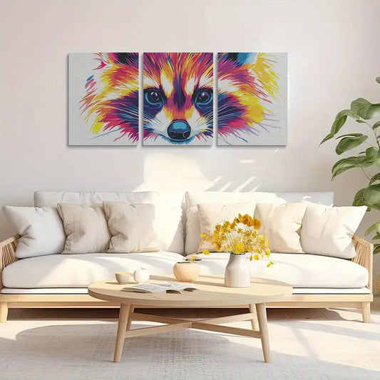 3pcs Cute Raccoon face Canvas Painting Metal Print Ready to Hang Art