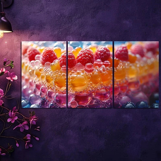 3pcs Colorful Cake with Berries Metal Print Ready to Hang Art