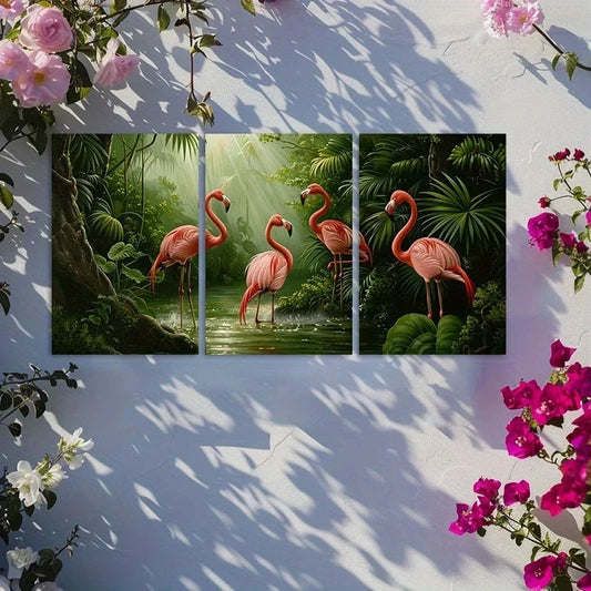 3pcs Flamingo Tropical Oil Painting Metal Print Ready to Hang Art