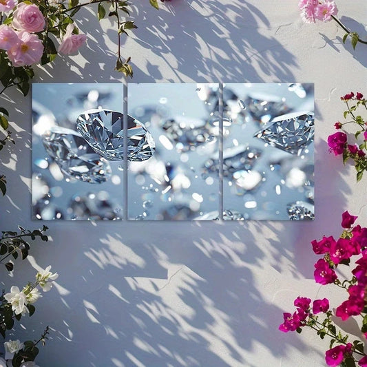 3pcs Luxurious Diamond Underwater Treasures Metal Print Ready to Hang Art