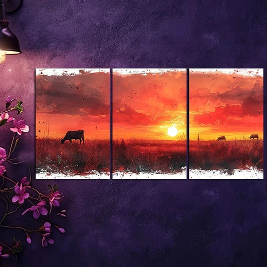 3pcs 3pcs Charming Sunset Cows & Sheep Metal Print Ready to Hang Art
