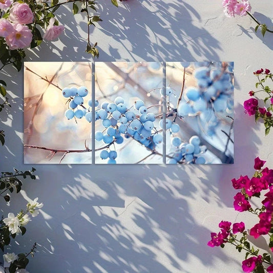 3pcs Blue Berries on Brambles Nature-Inspired Metal Print Ready to Hang Art