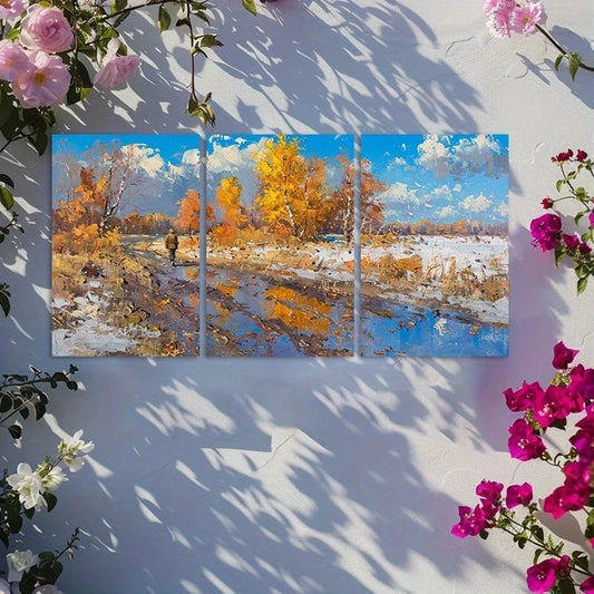 3pcs Strolling Road Landscape Metal Print Ready to Hang Art