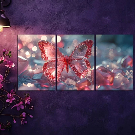 3pcs Luxurious Shining Crystal Butterfly Metal Print Ready to Hang Art