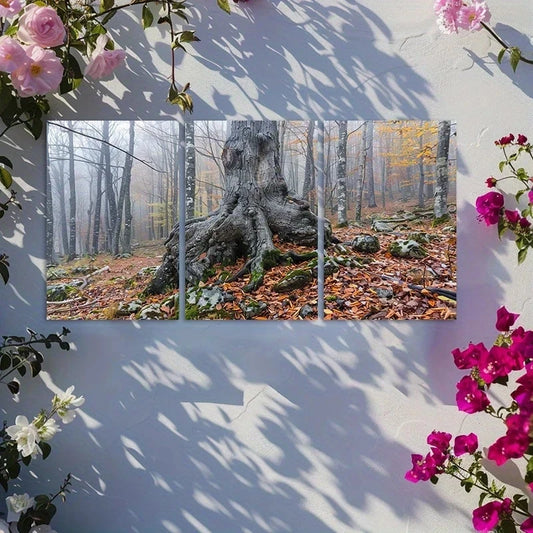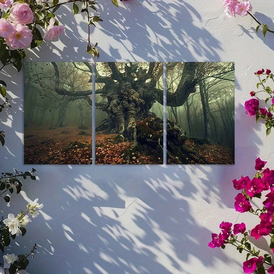 3pcs Old Gnarled Tree in Autumn Forest Metal Print Ready to Hang Art