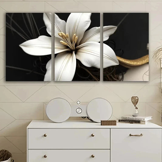 3pcs White Flowers on Black Painting Metal Print Ready to Hang Art
