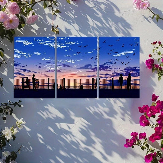 3pcs Anime Sky with Clouds and Silhouettes Metal Print Ready to Hang Art