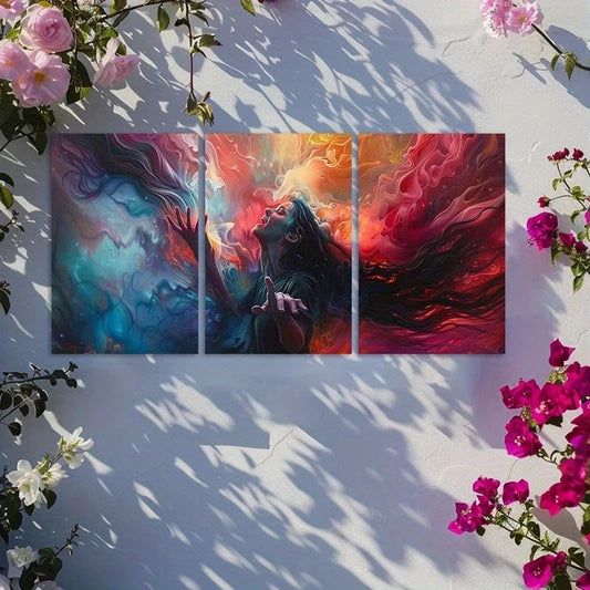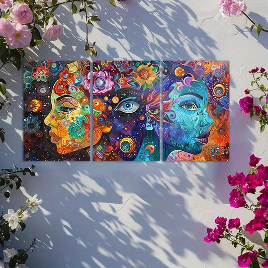 3pcs Surreal Portraits with Vibrant Colors Metal Print Ready to Hang Art