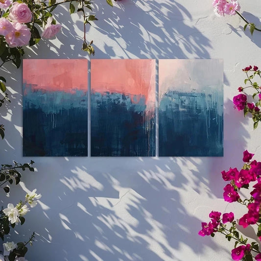 3pcs Dark Blue to Pink Gradient Abstract Design Metal Print Ready to Hang Art