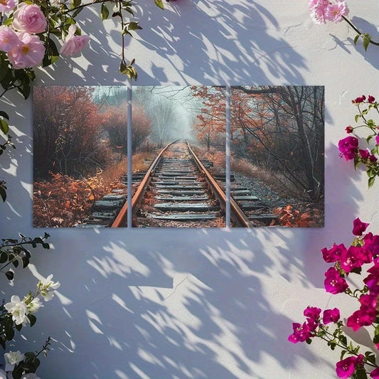 3pcs Rustic Abandoned Railway Track Metal Print Ready to Hang Art