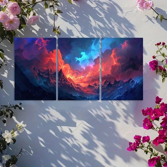 3pcs Painting of Clouds, Red and Blue Sky Metal Print Ready to Hang Art