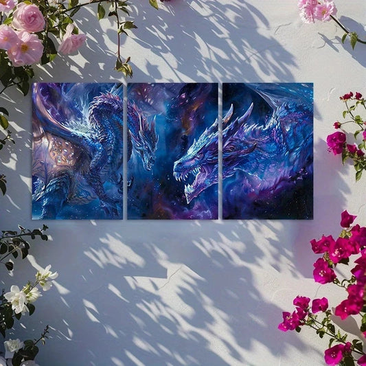 3pcs Fantasy Dragon Mythical Creatures Metal Print Ready to Hang Art