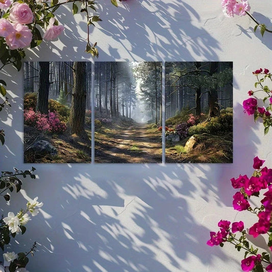 3pcs Tall Pines and Fuchsias Landscape Metal Print Ready to Hang Art