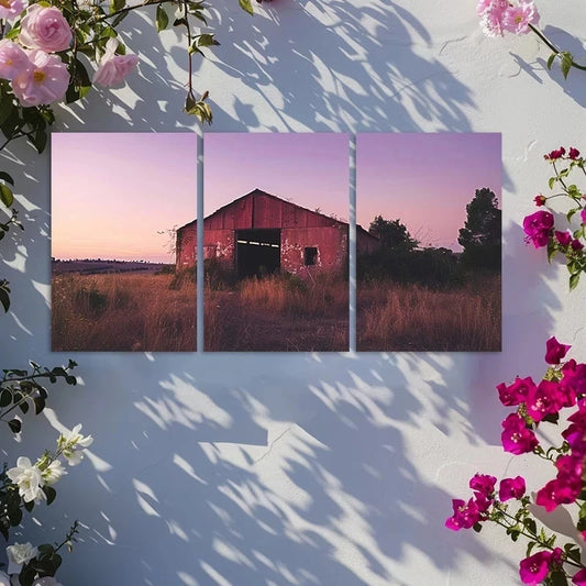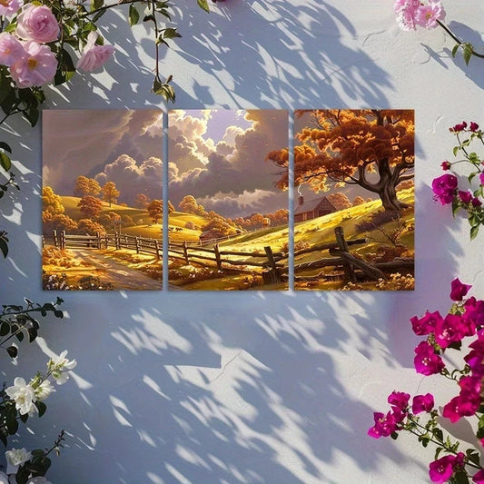 3pcs Rustic Countryside Sunset Metal Print Ready to Hang Art