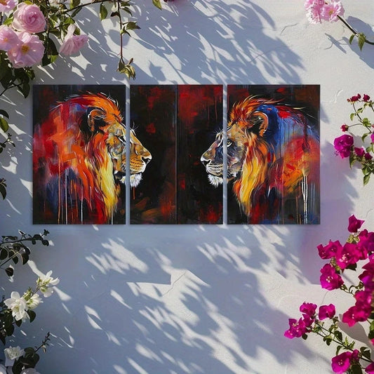 3pcs Majestic Crown and Lion Design Metal Print Ready to Hang Art