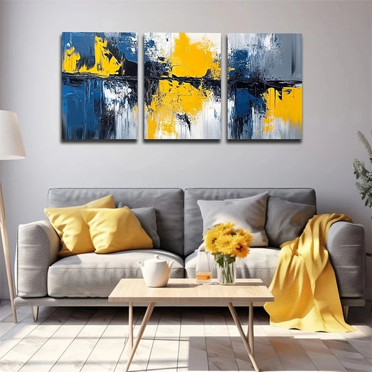 3pcs Blue and Yellow Paintings Metal Print Ready to Hang Art