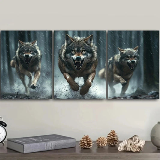3pcs Wolves Running Animal Themed Metal Print Ready to Hang Art
