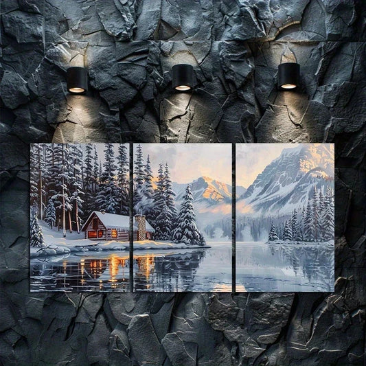 3pcs Scenic Lake Louise Winter Landscape Metal Print Ready to Hang Art