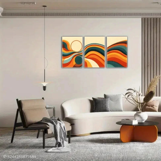 3pcs Vibrant Modern Geometric Abstract Metal Print Ready to Hang Art