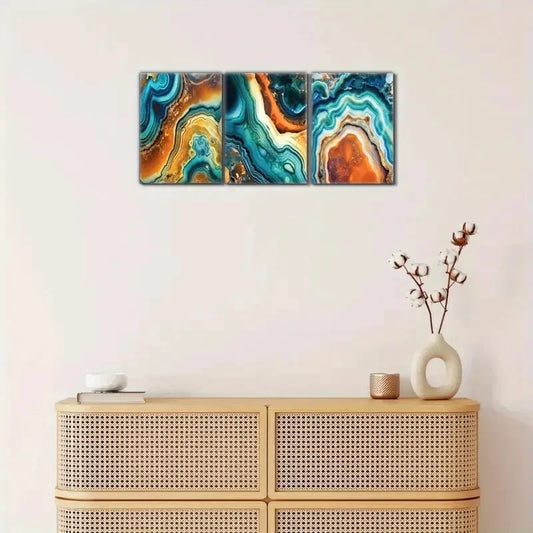 3pcs Artistic Choice Bold Abstract Agate Geode Metal Print Ready to Hang Art